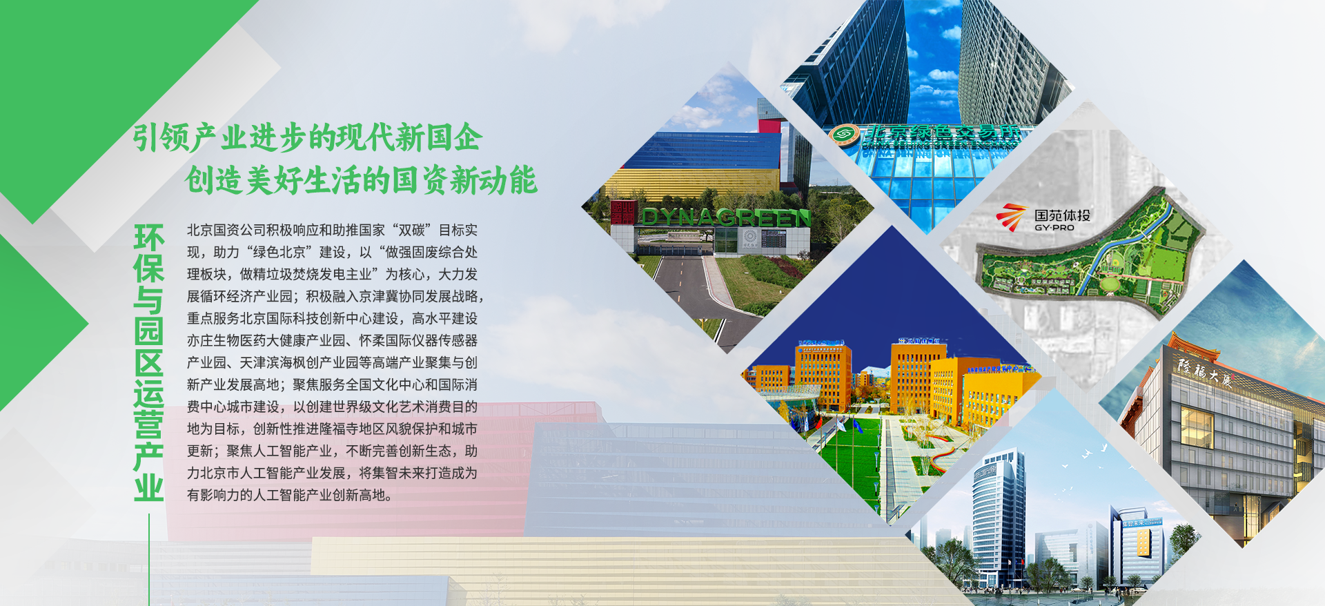 北京國資公司積極響應(yīng)和助推國家“雙碳”目標(biāo)實(shí)現(xiàn),助力“綠色北京”建設(shè),以“做強(qiáng)固廢綜合處理板塊,做精垃圾焚燒發(fā)電主業(yè)”為核心,大力發(fā)展循環(huán)經(jīng)濟(jì)產(chǎn)業(yè)園;積極融入京津冀協(xié)同發(fā)展戰(zhàn)略,重點(diǎn)服務(wù)北京國際科技創(chuàng)新中心建設(shè),高水平建設(shè)亦莊生物醫(yī)藥大健康產(chǎn)業(yè)園、懷柔國際儀器傳感器產(chǎn)業(yè)園、天津?yàn)I海楓創(chuàng)產(chǎn)業(yè)園等高端產(chǎn)業(yè)聚集與創(chuàng)新產(chǎn)業(yè)發(fā)展高地;聚焦服務(wù)全國文化中心和國際消費(fèi)中心城市建設(shè),以創(chuàng)建世界級文化藝術(shù)消費(fèi)目的地為目標(biāo),創(chuàng)新性推進(jìn)隆福寺地區(qū)風(fēng)貌保護(hù)和城市更新;聚焦人工智能產(chǎn)業(yè),不斷完善創(chuàng)新生態(tài),助力北京市人工智能產(chǎn)業(yè)發(fā)展,將集智未來打造成為有影響力的人工智能產(chǎn)業(yè)創(chuàng)新高地。