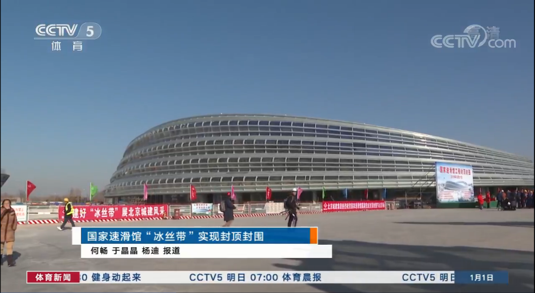 北京時間12月31日,國家速滑館“冰絲帶”實現(xiàn)封頂封圍