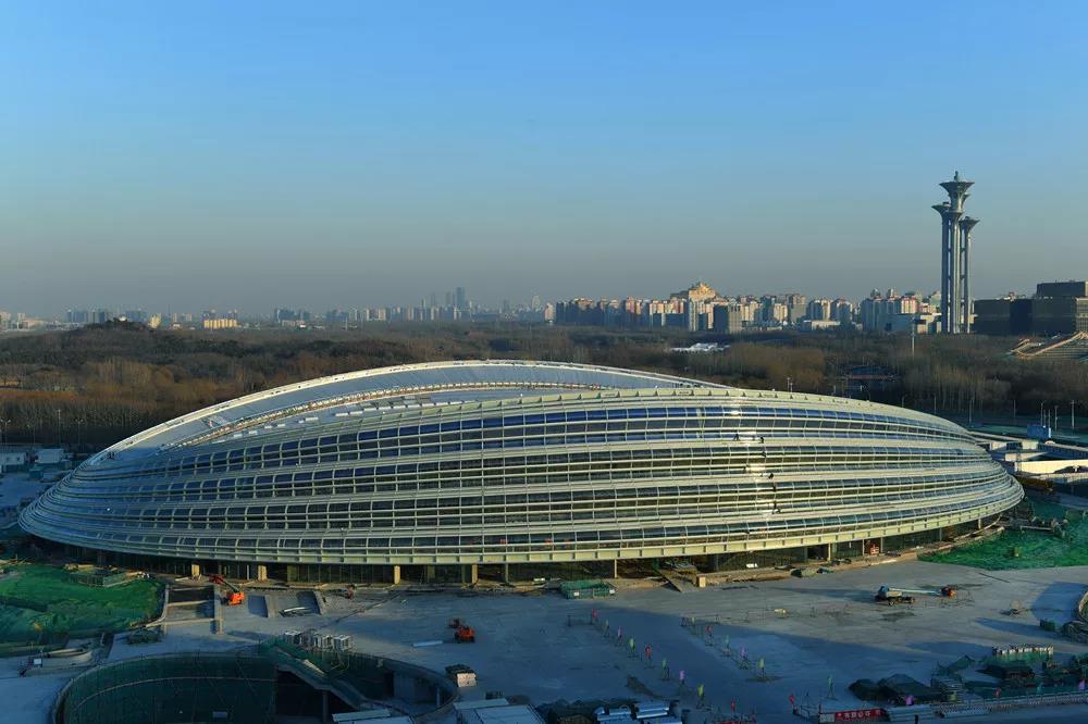國家速滑館封頂封圍,實(shí)現(xiàn)“絲帶飛舞”。
