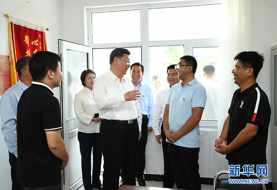 7月15日至16日,中共中央總書記、國家主席、中央軍委主席習(xí)近平在內(nèi)蒙古考察并指導(dǎo)開展“不忘初心、牢記使命”主題教育。這是15日下午,習(xí)近平在赤峰市喀喇沁旗河南街道馬鞍山村黨群服務(wù)中心了解基層黨建、民族團(tuán)結(jié)和鄉(xiāng)村振興情況。 新華社記者 謝環(huán)馳 攝