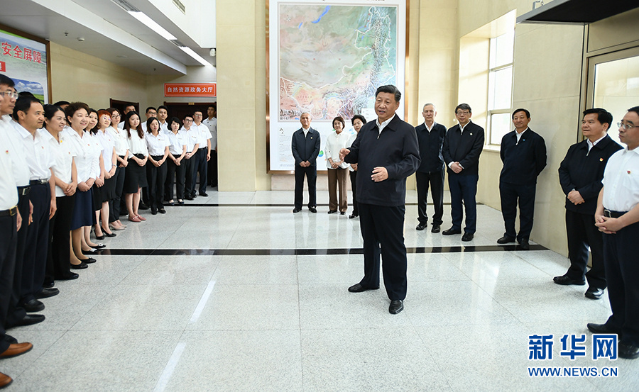 7月15日至16日,中共中央總書記、國家主席、中央軍委主席習(xí)近平在內(nèi)蒙古考察并指導(dǎo)開展“不忘初心、牢記使命”主題教育。這是16日上午,習(xí)近平到內(nèi)蒙古自治區(qū)自然資源廳,實(shí)地調(diào)研指導(dǎo)開展“不忘初心、牢記使命”主題教育。 新華社記者 謝環(huán)馳 攝