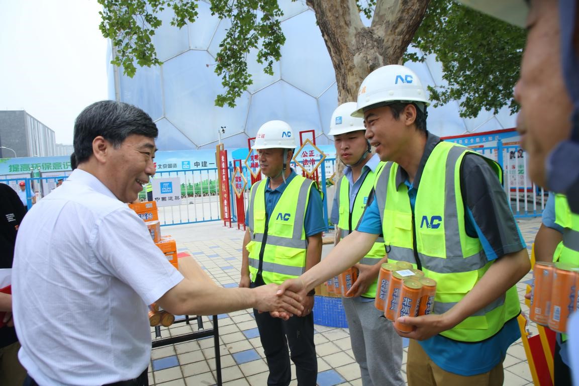 6月27日,北京國資公司黨委副書記、總裁直軍一行到國家游泳中心開展“不忘初心、牢記使命”主題教育調(diào)研慰問活動,察看了國家游泳中心奧林匹克比賽大廳冰壺場地改造及南廣場改造施工現(xiàn)場,并對一線職工、困難黨員和基層先進模范進行親切慰問。