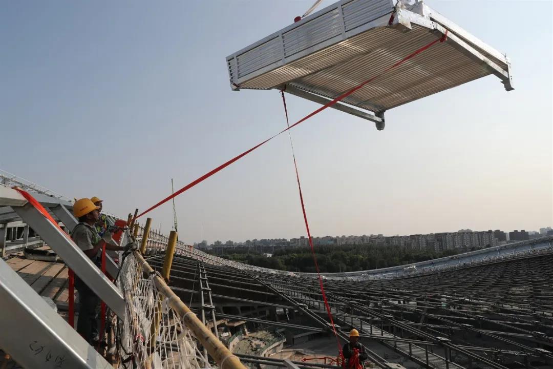 2019年9月,國(guó)家速滑館開始安裝屋面面板