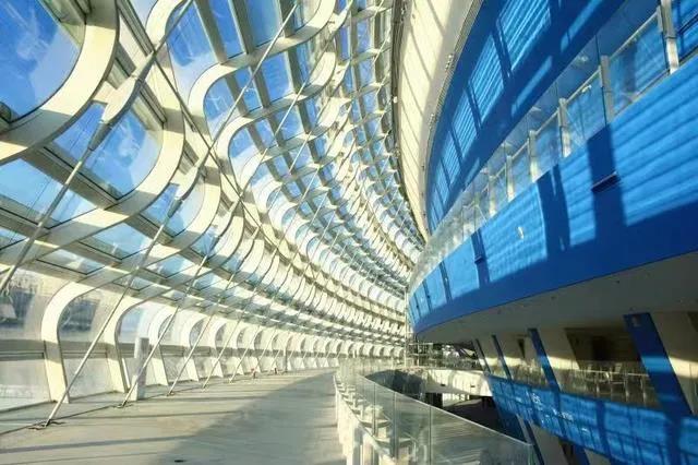 這種創(chuàng)新型“冰絲帶”狀曲面玻璃幕墻的設(shè)計(jì)靈感來自冰雪運(yùn)動(dòng)與速度的結(jié)合。盤旋的“冰絲帶”象征著速度滑冰運(yùn)動(dòng)員高速滑進(jìn)時(shí)冰刀留下的軌跡,22條“冰絲帶”又象征著在2022年舉辦北京冬奧會(huì)。