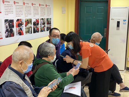 養(yǎng)老驛站黨員幫助社區(qū)老人學習手機軟件使用方法