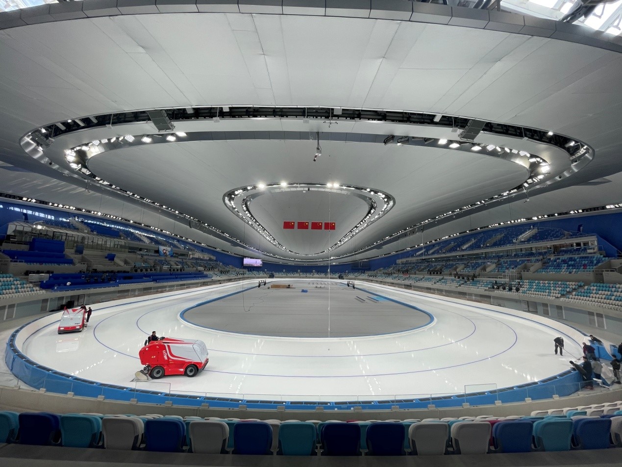 本次測(cè)試賽首賽是“相約北京”速度滑冰中國公開賽,將于10月8日至10日在國家速滑館展開。作為冬奧會(huì)唯一新建冰上競(jìng)賽場(chǎng)館,國家速滑館“冰絲帶”于2020年12月建成完工,為世界貢獻(xiàn)了由中國設(shè)計(jì)、中國技術(shù)、中國材料、中國制造組成的奧運(yùn)場(chǎng)館建設(shè)“中國方案”,特別是近1.2萬平方米的世界最大采用二氧化碳制冰的速度滑冰場(chǎng)館,在綠色、環(huán)保、可持續(xù)方面為奧運(yùn)會(huì)樹立了新標(biāo)桿。