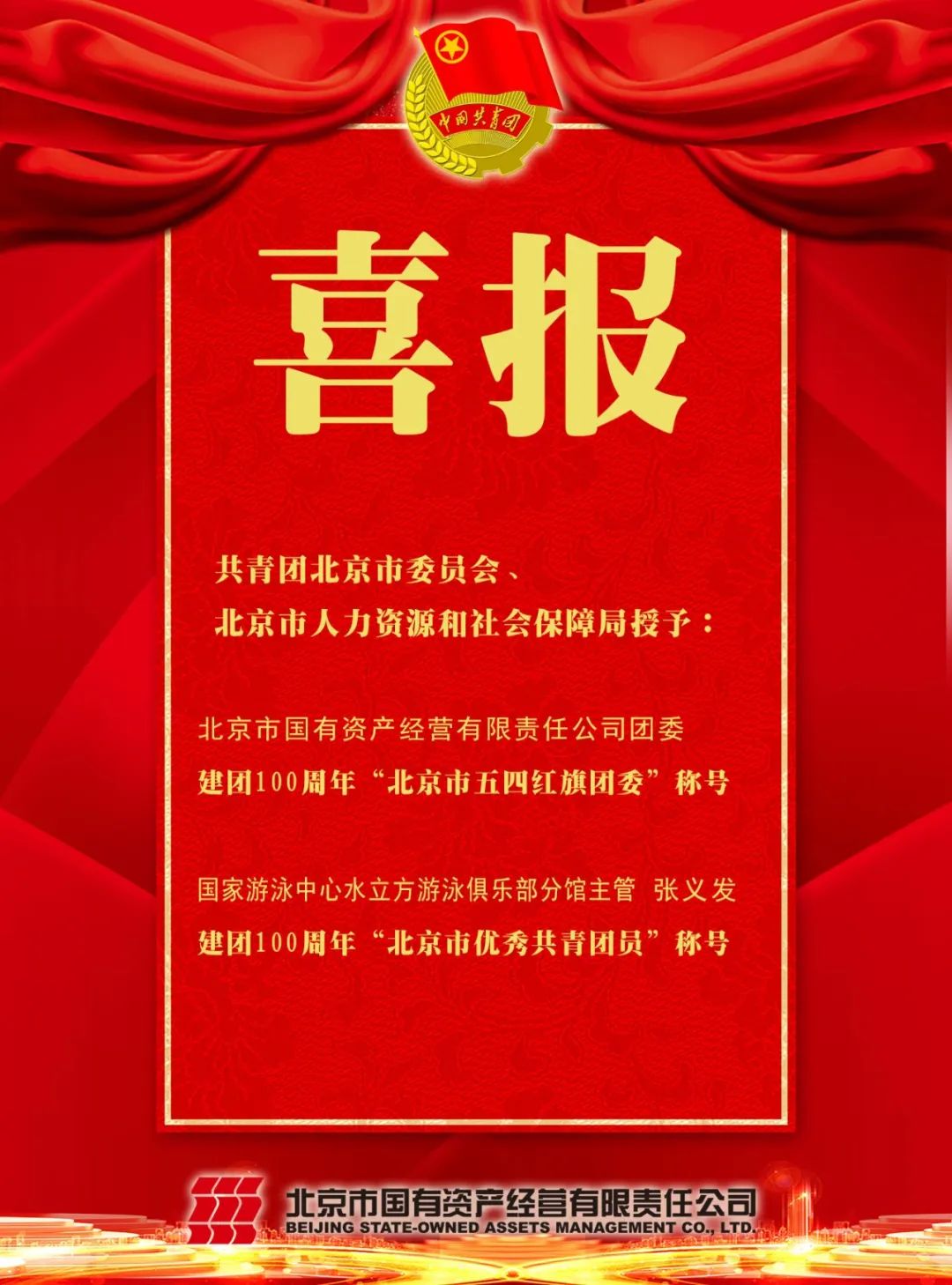北京國(guó)資公司團(tuán)委榮獲建團(tuán)100周年“北京市五四紅旗團(tuán)委”稱號(hào)