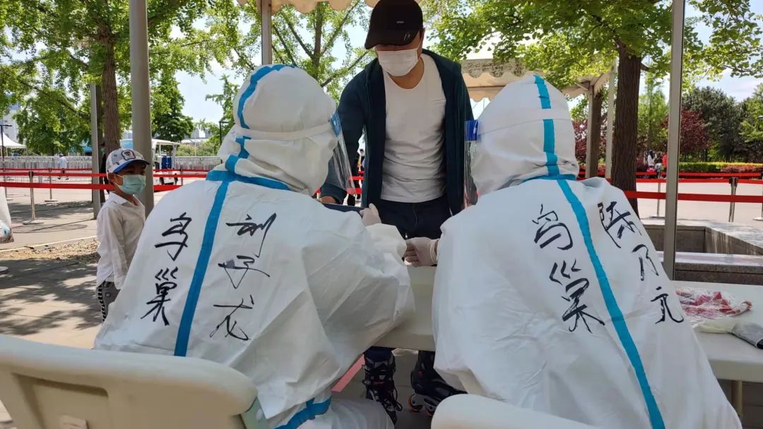 北科建集團(tuán)下沉干部王天爽在石景山五里坨社區(qū)協(xié)助開展核酸檢測工作