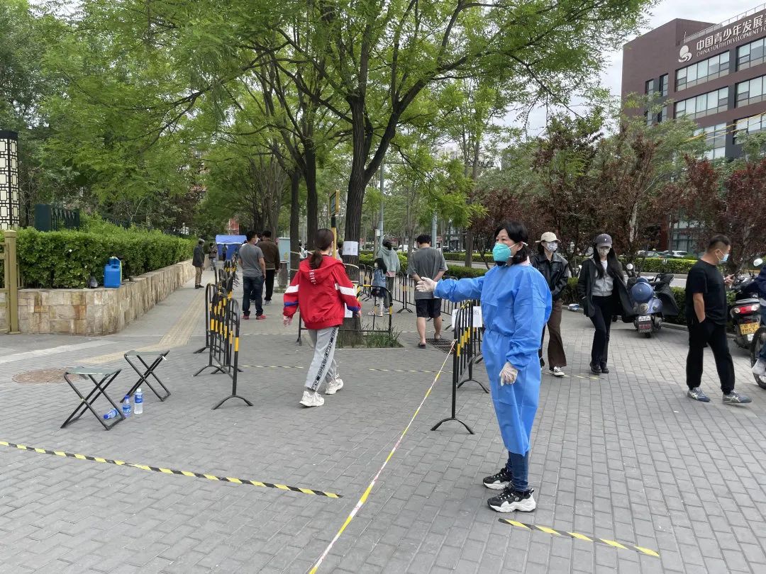 再擔(dān)保下沉干部在成壽寺社區(qū)協(xié)助核酸檢測工作
