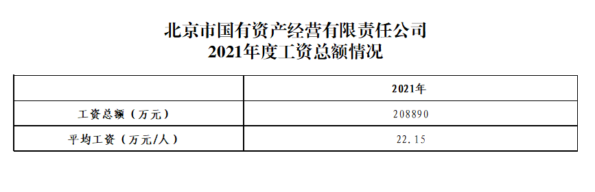 北京市國有資產經營有限責任公司2021年工資總額情況