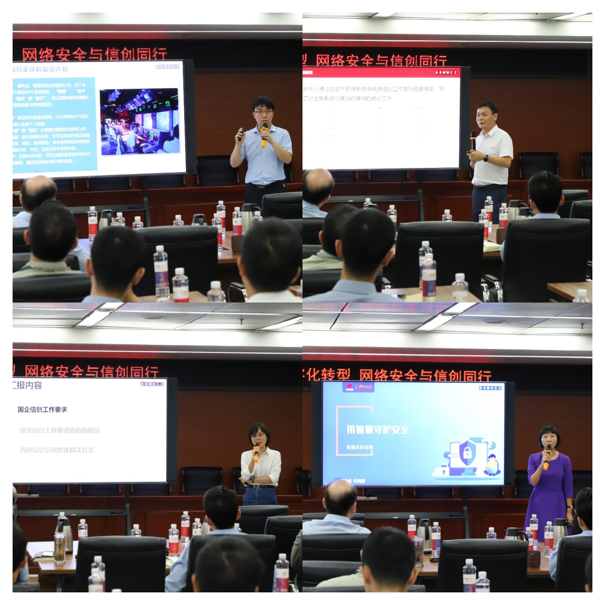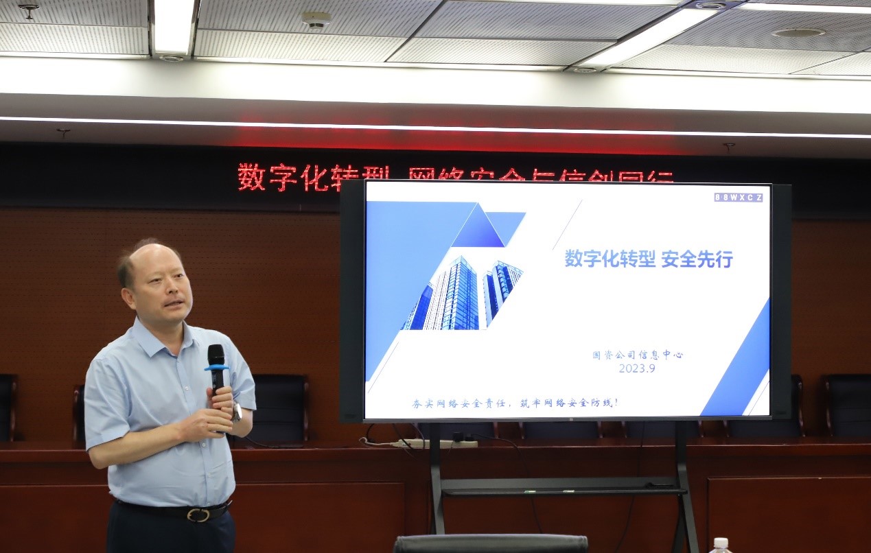 此次活動以“數(shù)字化轉(zhuǎn)型 網(wǎng)絡(luò)安全與信創(chuàng)同行”為主題,邀請國資公司綜合管理部(信息中心)和安信天行公司、首信云公司相關(guān)人員分別以《數(shù)字化轉(zhuǎn)型 安全先行》《用智慧守護(hù)安全》《信創(chuàng)工作分享》《國有企業(yè)信創(chuàng)通用解決方案》為題交流發(fā)言,重點(diǎn)圍繞網(wǎng)絡(luò)安全的國際形勢和國家政策、國資公司防護(hù)機(jī)制、日常安全威脅、信創(chuàng)工作部署及對外提供的信創(chuàng)解決方案等內(nèi)容進(jìn)行分享。