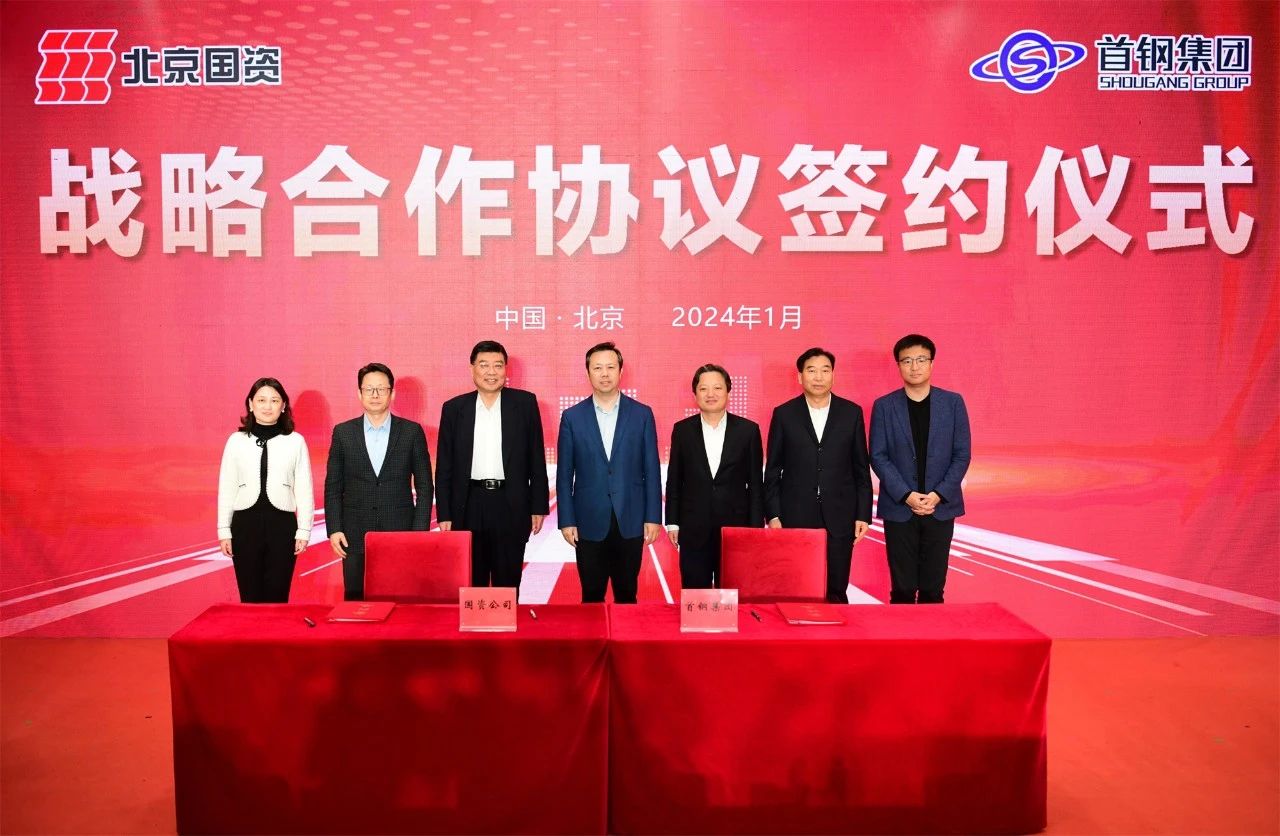 1月12日,北京國資公司與首鋼集團戰(zhàn)略合作協議簽約儀式在國家體育場(鳥巢)金色大廳舉行。北京市國資委黨委書記、主任曾勁出席儀式并致辭。北京國資公司黨委書記、董事長趙及鋒,黨委副書記、董事、總經理張杰,黨委常委、副總經理孫婧;首鋼集團黨委書記、董事長趙民革,黨委副書記、董事、總經理邱銀富,副總經理趙天旸等參加簽約儀式。儀式上,張杰與邱銀富分別代表雙方簽署戰(zhàn)略合作協議。